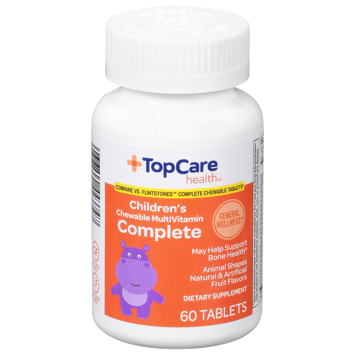 Compare vs. Flintstones complete chewable tablets (Flintstones is a trademark of Hanna-Barbera Productions, Inc.) General wellness. May help support bone health. Animal shapes.