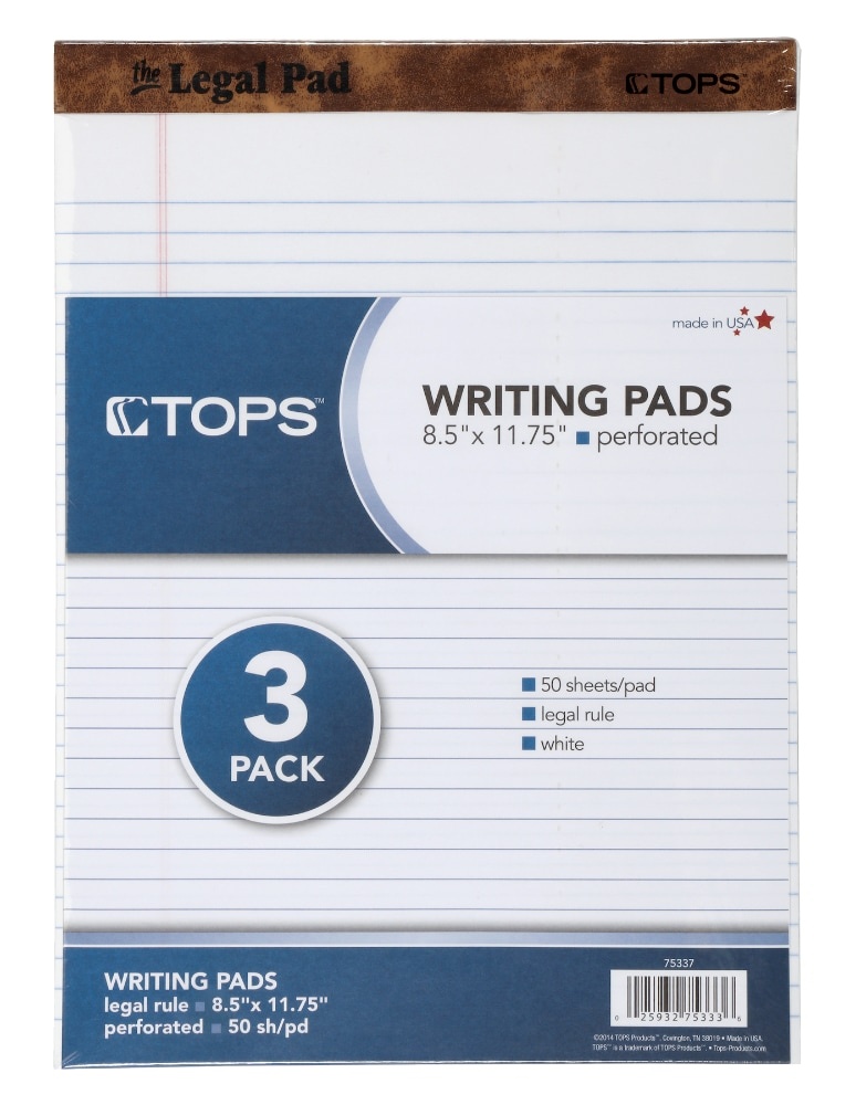 Tops Perforated White Rule Legal Pad - White - 50 Sheets