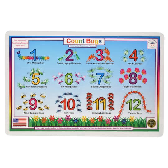Get the Tot Talk Count Bugs Placemat at Michaels. Give your restless kids a break from their books and teach them all about numbers with this placemat from Tot Talk. 17.5" x 11.5" (44.45cm x 27.94cm) …