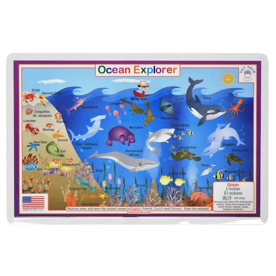 Get the Tot Talk Ocean Explorer Placemat at Michaels. Bring home this placemat from Tot Talk to introduce your kids to the beautiful marine world. 17.5" x 11.5" (44.45cm x 27.94cm) . Lightweight and d…
