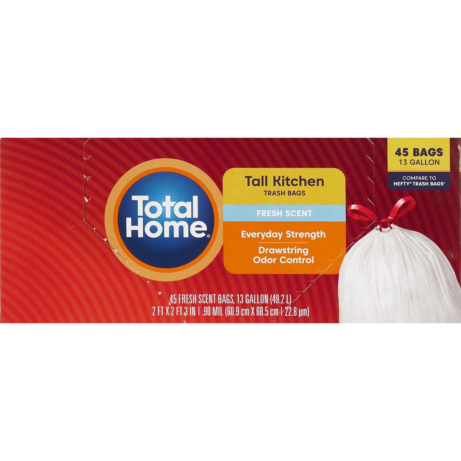 Total Home 13 Gallon Tall Kitchen Trash Bags, Fresh Scent, 45 Ct