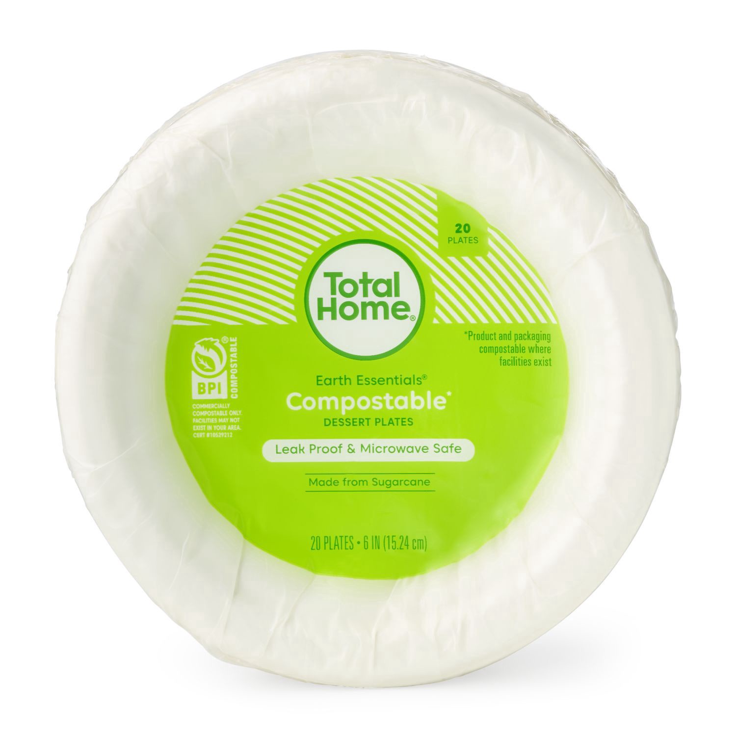 Total Home Earth Essentials Compostable Dessert Plate, 6 In, 20 Ct