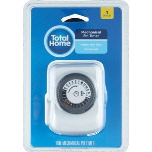 Mechanical pin timer. For indoor use only. Sets in 30 min on/off setting intervals in a 24-hour cycle. Total Home Mechanical Pin Timer provides a single grounded outlet for your indoor needs. It sets …