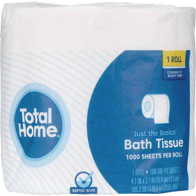 TOTAL HOME Just The Basics Bath Tissue 1 Roll Of 1000 1-Ply