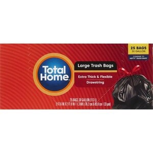 Smart buys for every home At Total Home, we know your home and family deserve the best. Our full range of hardworking products deliver great performance and a smart value.25 BAGS 30 GALLON -- Extra Th…