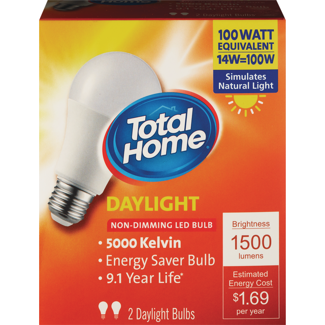 Total Home Led Light Bulb 15W=100W Daylight 2-Pack