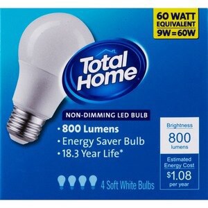 Total Home Non-Dimming Led Soft White Bulbs, 60 W, 4 Ct