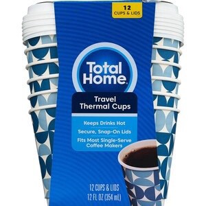 Disposable cups with lids. 12 oz. capacity. Strong and leak-resistant with a secure lid. Easy-grip texture. CVS quality. 12-count. Take your favorite hot or cold drinks with you anywhere with Total Ho…