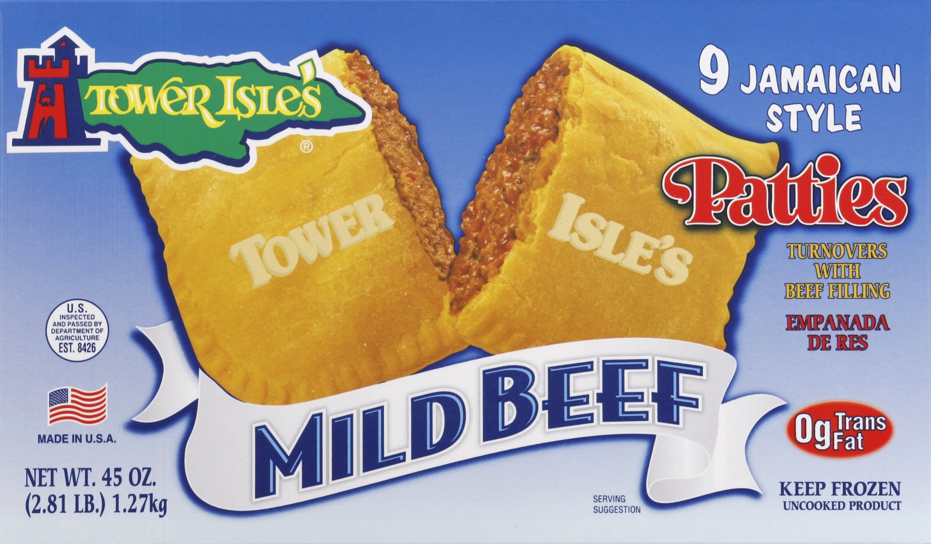 US inspected and passed by Department of Agriculture. 0 g trans fat. www.towerislespatties.com. Serving Occasions: Tower Isle's Beef Patties offer you, your family and your friends an extremely intere…