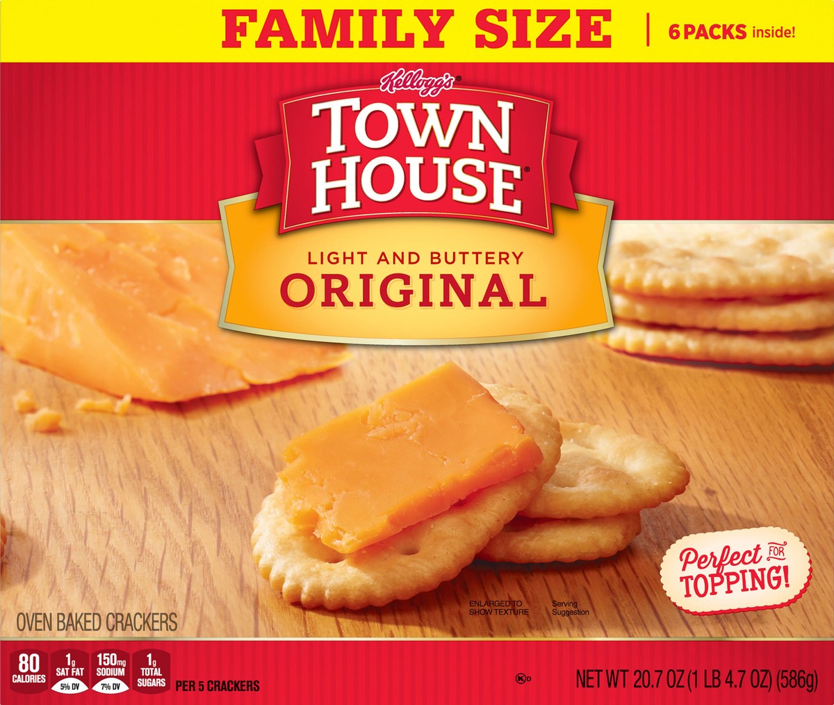 Light and buttery. 6 packs inside! Perfect for topping! Oven baked crackers. No high fructose corn syrup. Sustainable Forestry Initiative: Certified Sourcing. www.sfiprogram.org.