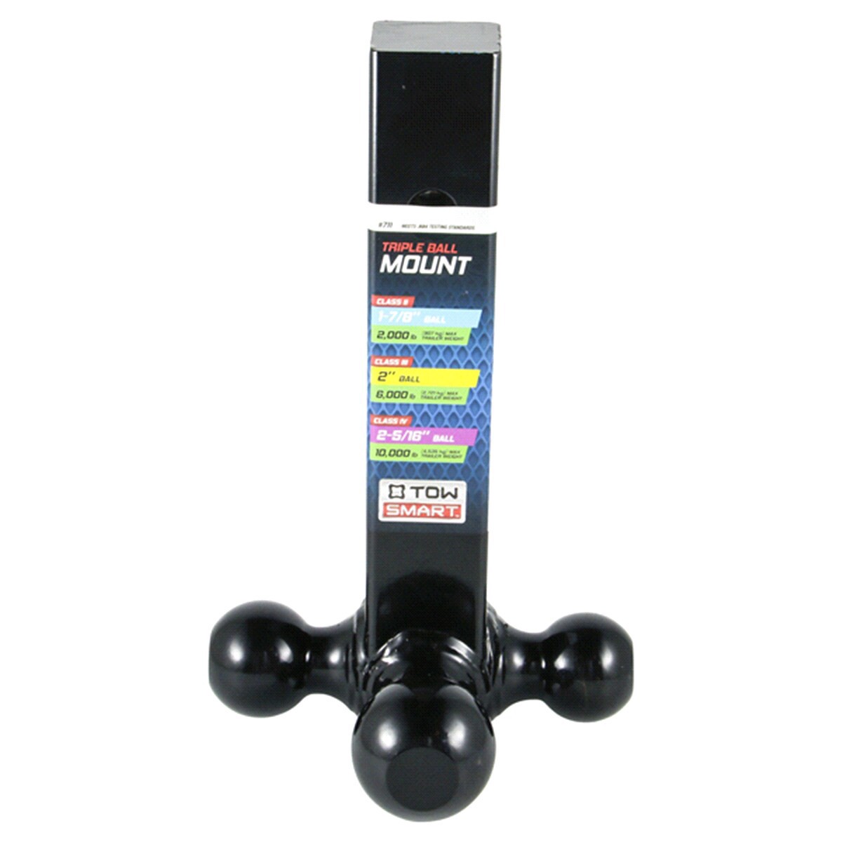The TowSmart Tri Ball Mount is built of a rugged steel construction with a durable black powdercoat finish that is corrosionresistant. It is a Hollow Steel design that will fit in 2 square receivers. …