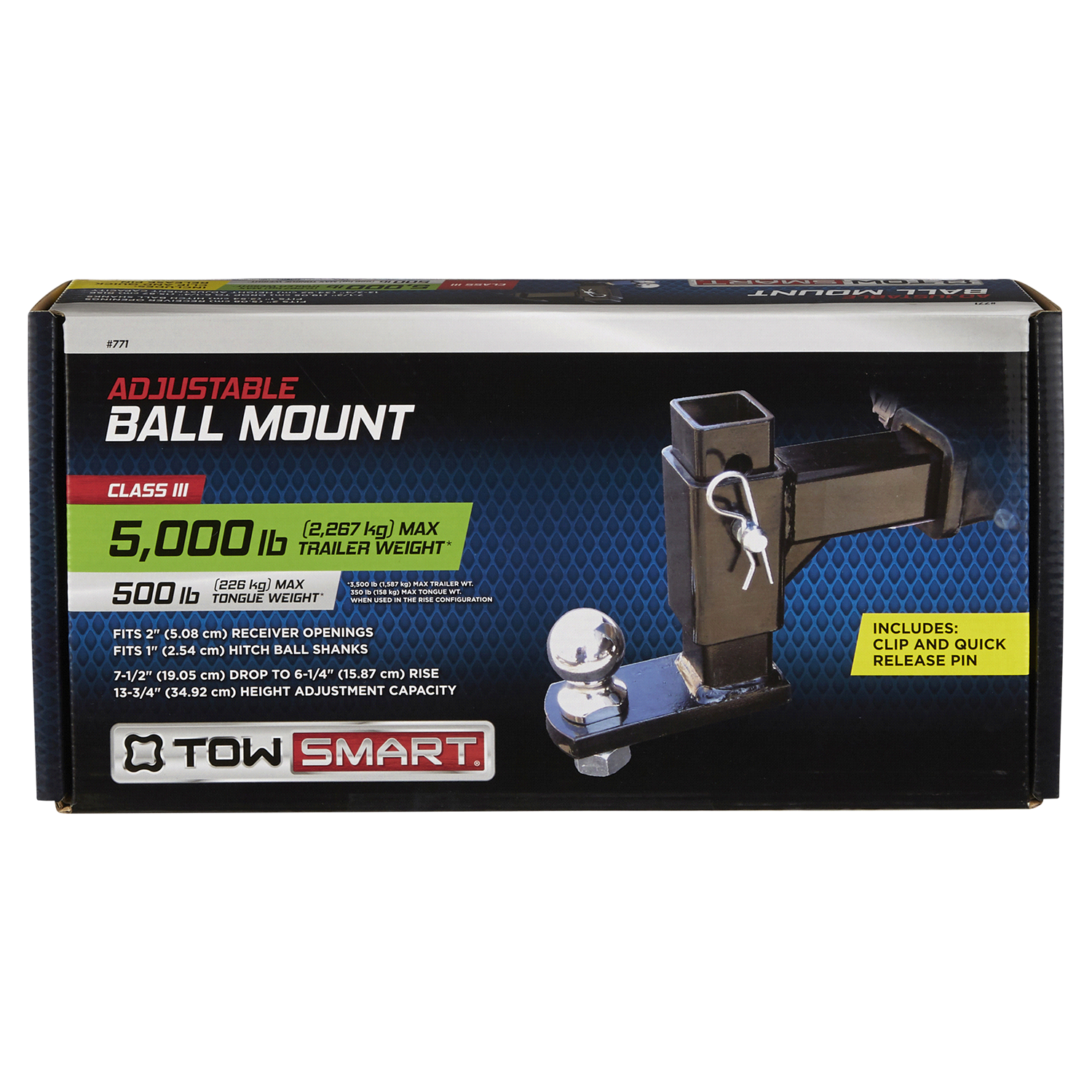 The TowSmart Class III Adjustable Ball Mount is built with rugged steel construction and has a durable powder-coat finish to help prevent corrosion. The adjustable ball mount fits 2" receiver openingsā¦