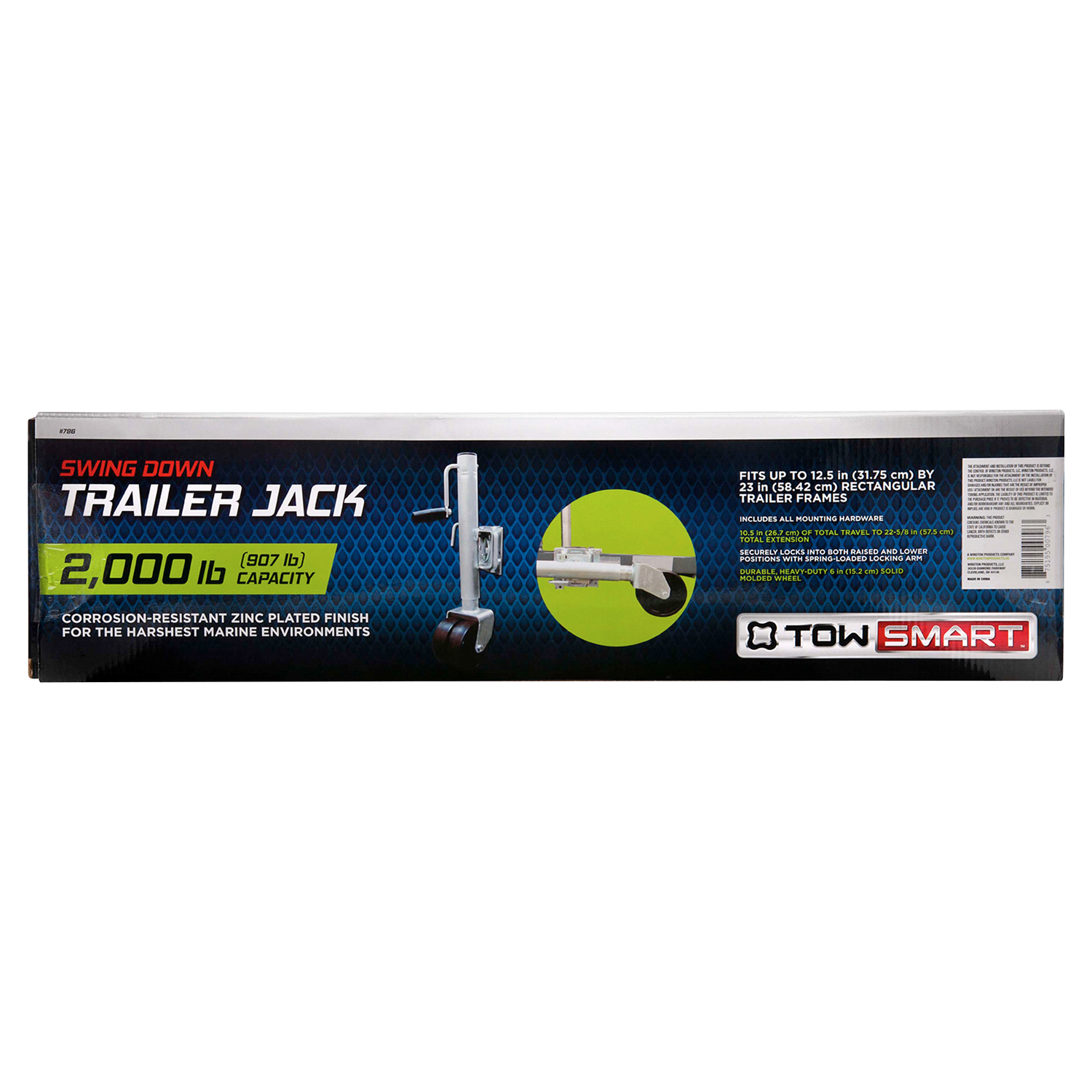 The TowSmart Trailer Jack is a trailer accessory that mounts to the trailer making it easy to store and transport. The jack securely locks into both raised and lower psotions with the spring loaded lo…