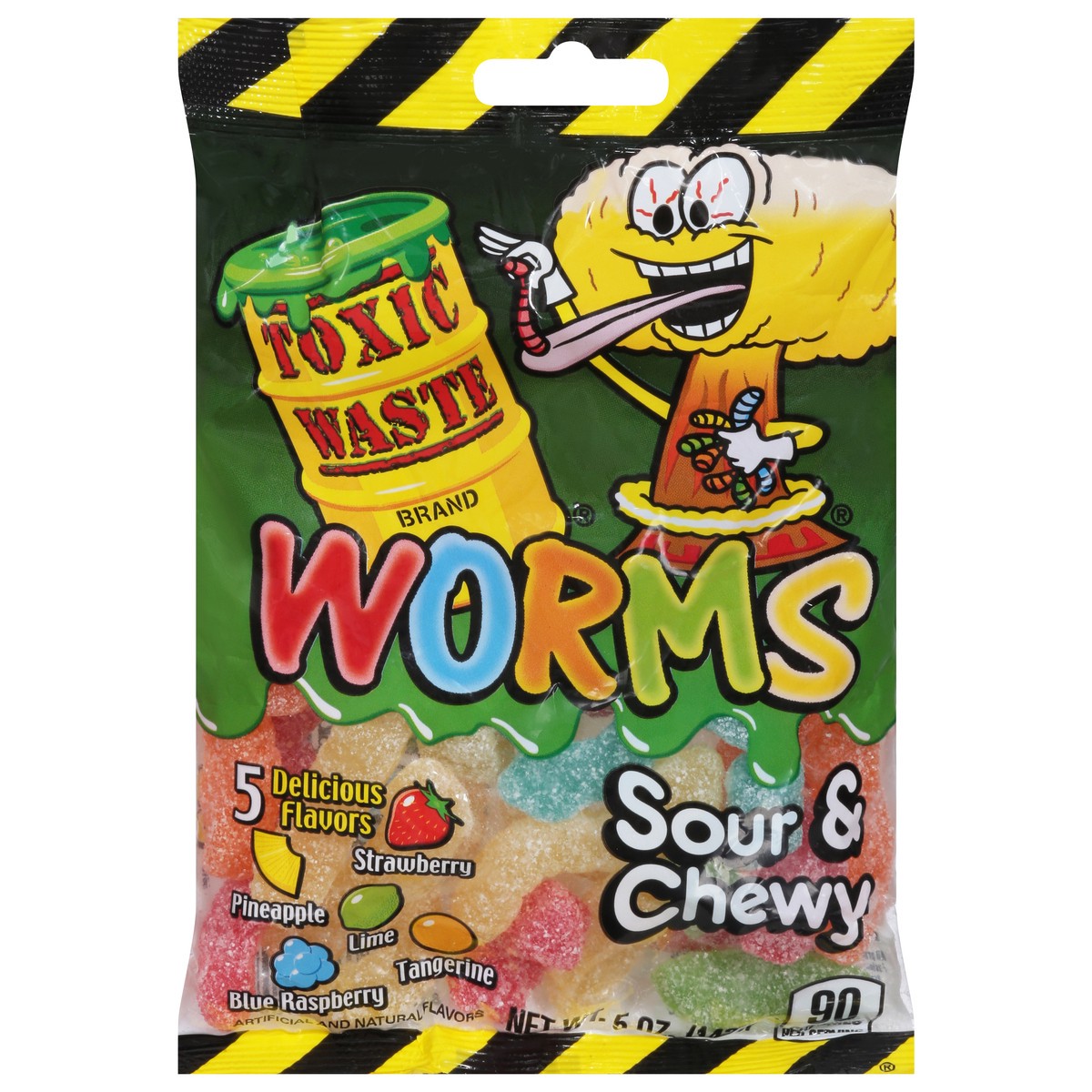 Sour Chewy Toxic Waste Worms include a scrumptious sour treat with five of the most delicious flavors including pineapple, strawberry, lime, blue raspberry and tangerine. Once kids taste the mouth-wat…