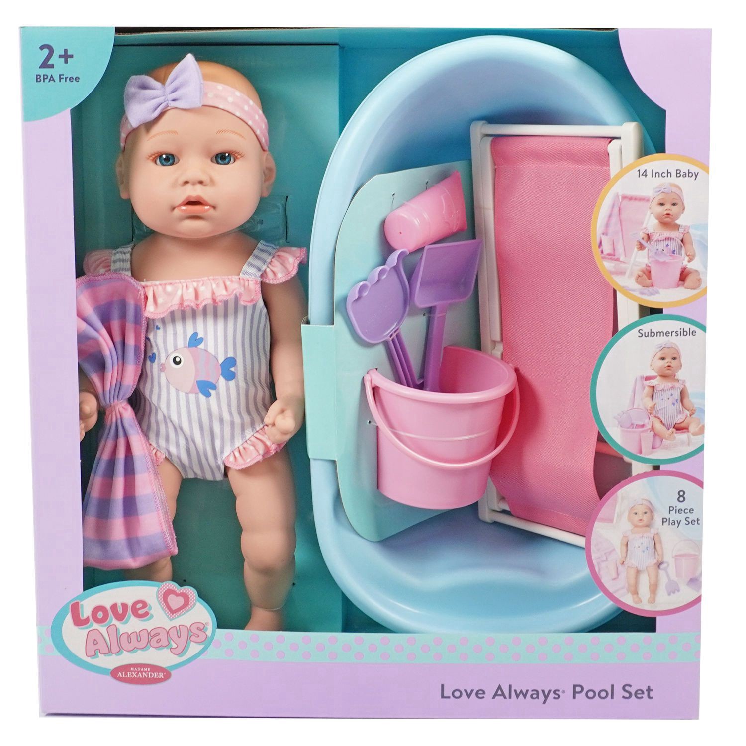 14â doll in swimsuit and headband, includes below accessories for children nurture and care: