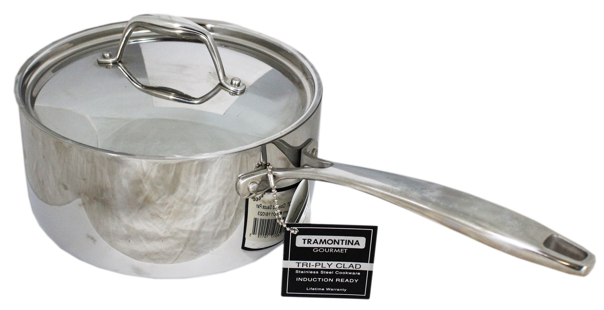Tramontina Gourmet Tri-Ply Clad Induction-Ready Stainless Steel Covered Sauce Pan