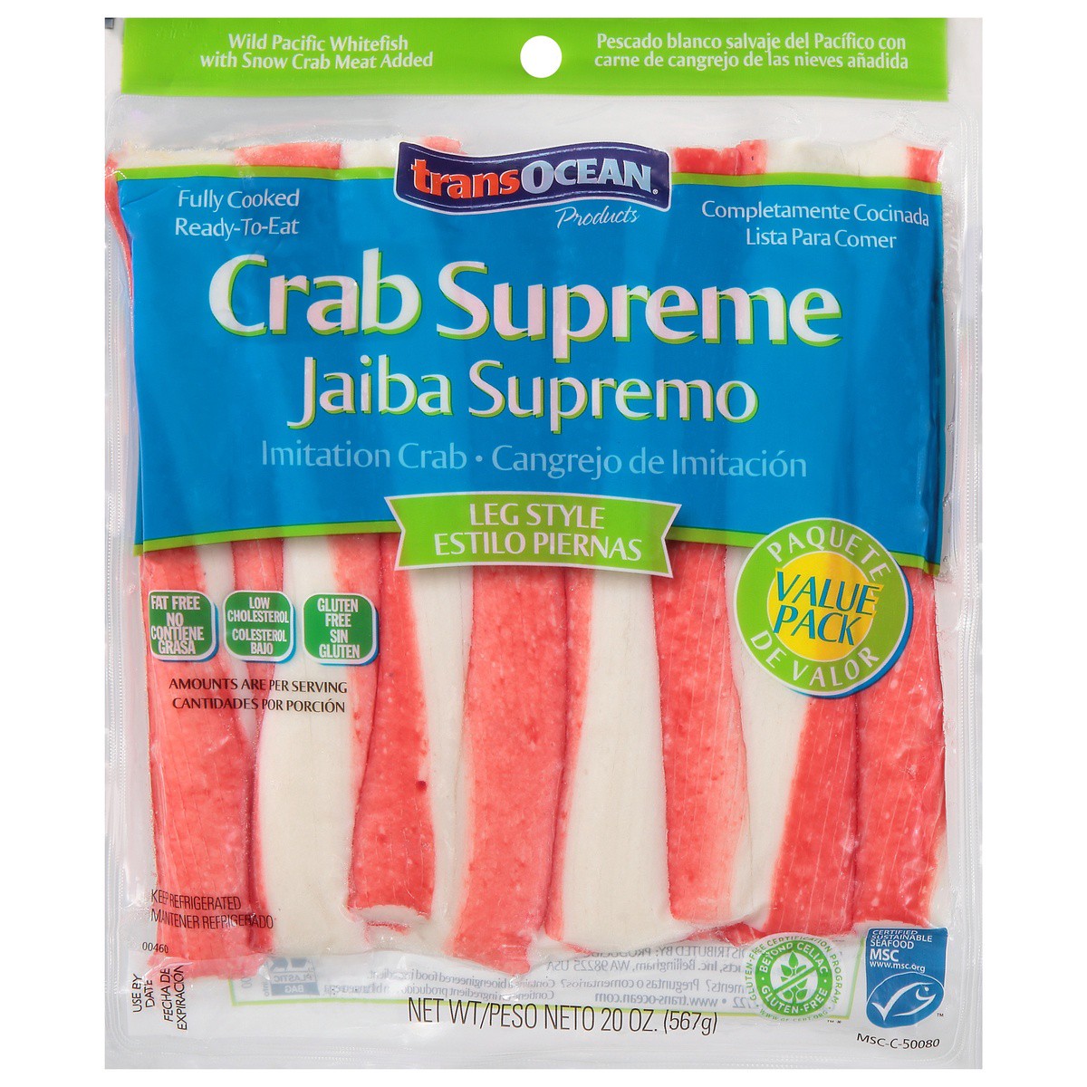 Fish Protein (Alaska Pollock and/or Pacific Whiting, MSC Certified), Water, Pea Starch, Egg Whites, Sugar, Potato Starch, Modified Tapioca Starch, Contains 2% or Less of: Beni-Zuwai Crab Meat, Natural…