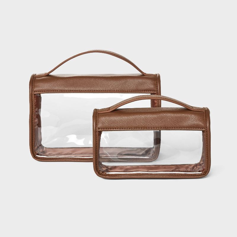 slide 2 of 4, Travel Pouch - A New Day™ Brown: Top Handle Handbag, Solid Pattern, PVC & Material, 1 ct