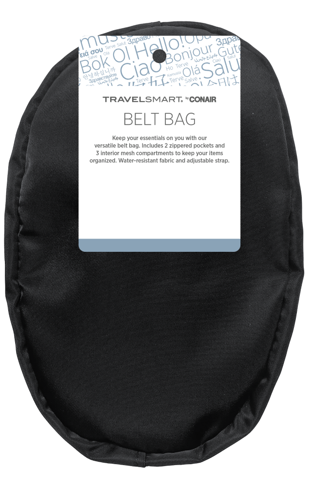 Keep your essentials on you with our versatile belt bag. Includes 2 zippered pockets and 3 interior mesh compartments to keep your items organized.
