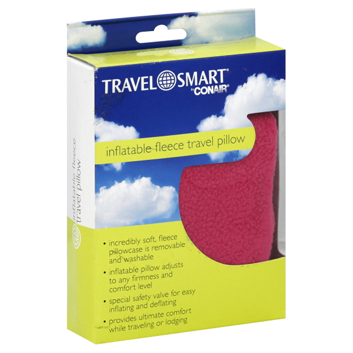 Travel Smart Inflatable Travel Pillow with Fleece Cover