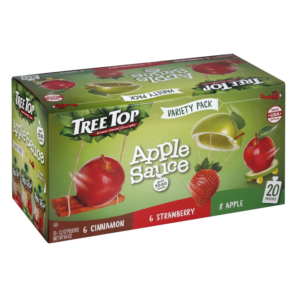 Grower owned since 1960. Good to go fruit. 100% USA apples. 20 pouch variety pack. No high fructose corn syrup. Clear pouch. Tree Top is a grower-owned cooperative.