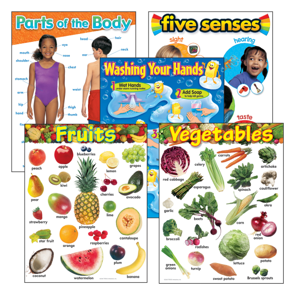 TREND Learning Charts, 17" X 22", Healthy Living, Pack Of 5 Charts