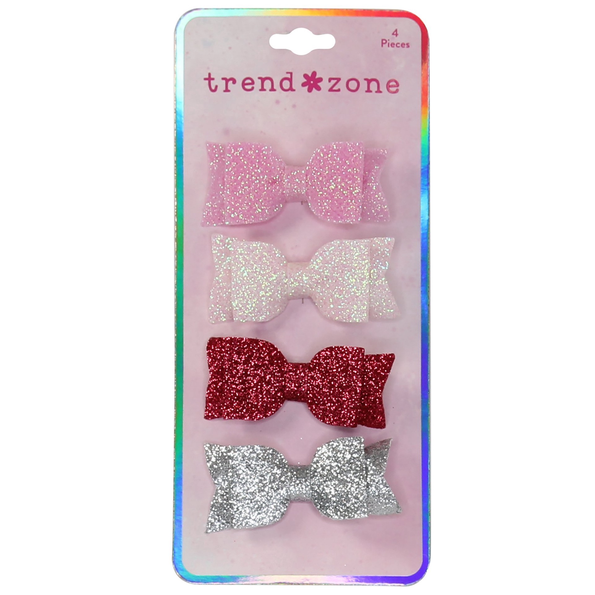 Add a little sparkle to your hairstyle. Our 4piece Glitter Hair Clip set has comfortable ribbon covered salons. Packaging may vary.