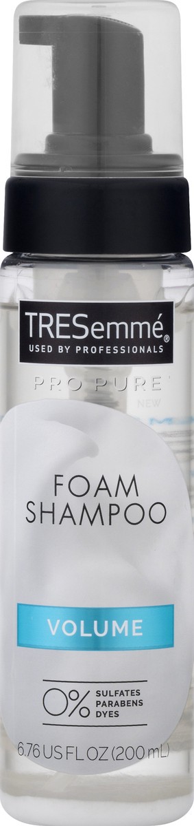 TRESemmé Pro Pure Foam shampoo is made with 100% gentle cleansers and will give you a worry free wash experience. Our formulations are: Paraben & Dye Free. Our fast-rinsing lightweight foam gently lif…