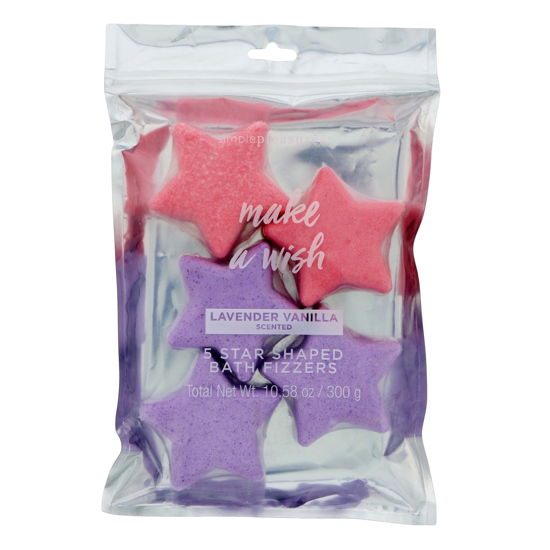-Assorted Scents and Shapes-Stars: Make A Wish, Lavender Vanilla Scented. 5 Star Shaped Bath Fizzers-Donut: Donut Worry, Sugar Frosting Scented. 5 Donut Shaped Bath Fizzers