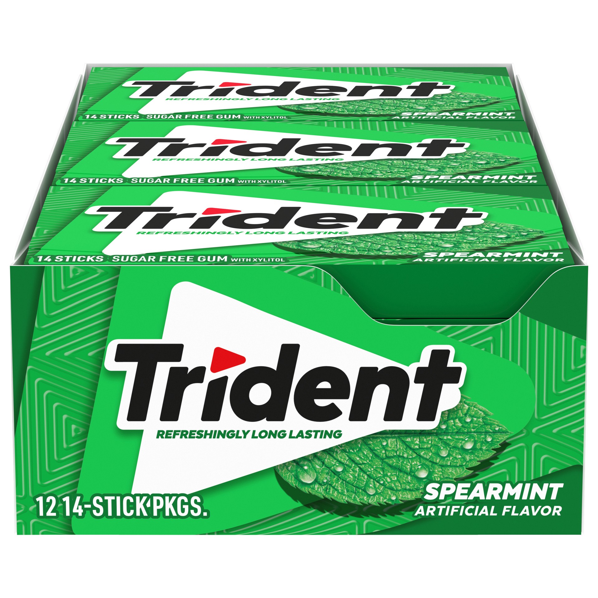 Trident Spearmint Sugar Free Gum is a delicious way to freshen breath and protect your teeth. This sugar free chewing gum puts on a green super hero cape and becomes the Cool Crusader of Spearmint Fre…