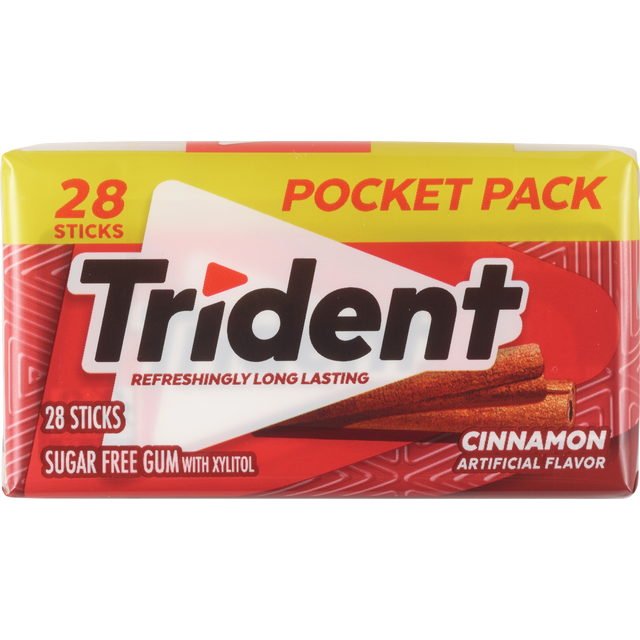 2x the gum in pocket ready hard case! Trident Cinnamon Sugar Free Gum is a delicious way to get fresh breath and protect your teeth. Bursting with cinnamon flavor, this Trident gum is sweetened with x…
