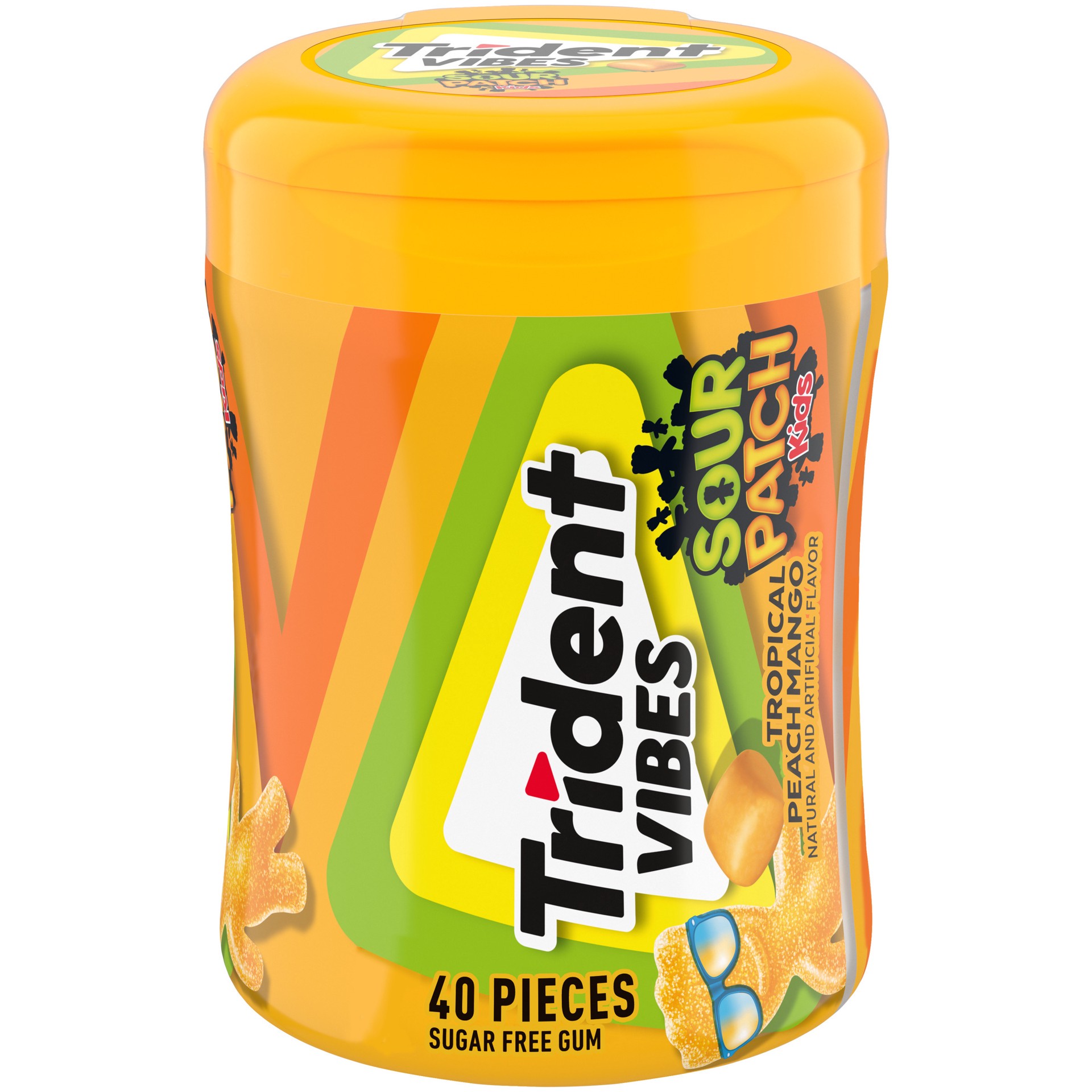 Trident Vibes SOUR PATCH KIDS Tropical Peach Mango Gum packs all the fun of your favorite sour candy into a sugar-free gum that delivers a delicious, long-lasting chewing experience. This sugarless gu…