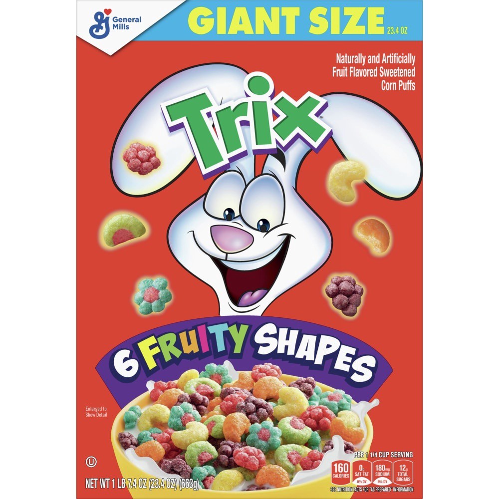 Trix breakfast cereal brings fun to your family's morning! The naturally and artificially fruit flavored sweetened corn puffs feature six fruity shapes bursting with fruity taste. Each serving provide…