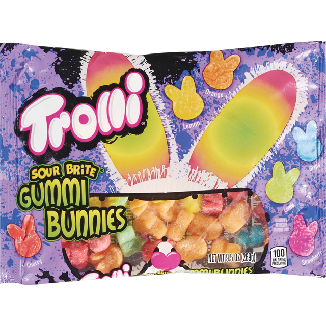 100 calories per serving. Contains bioengineered food ingredients. Cherry; Lemon; Orange; Grape; Strawberry; Lime. Assortment may vary. www.trolli.com. Facebook. Instagram. Twitter. TikTok. Call/Text …