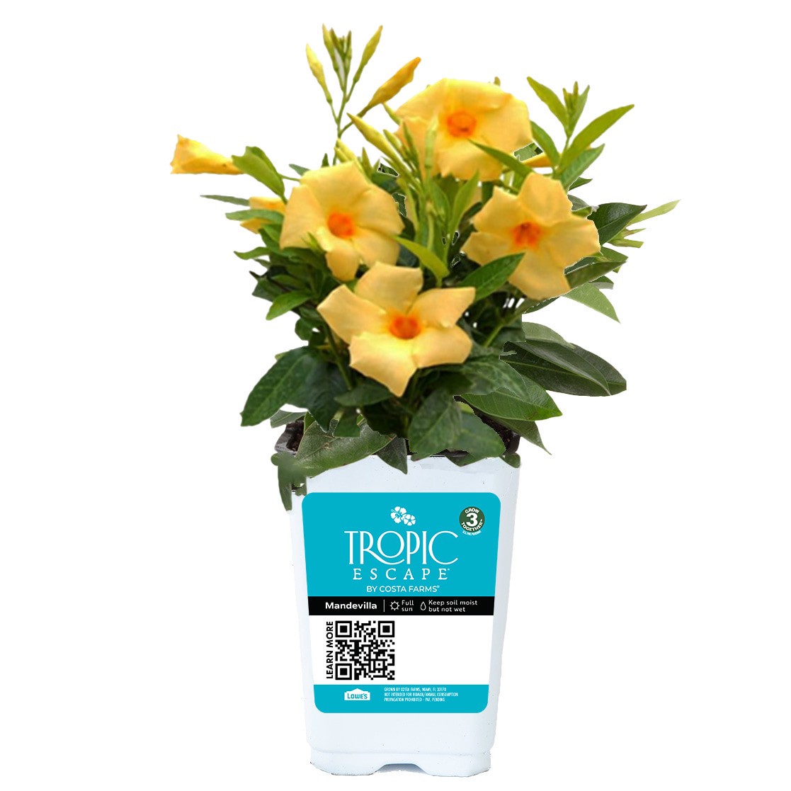Tropic Escape Mandevilla Flowering Shrub in 1.5 -Pint Pot 1.0 -Pack with Yellow Blooms