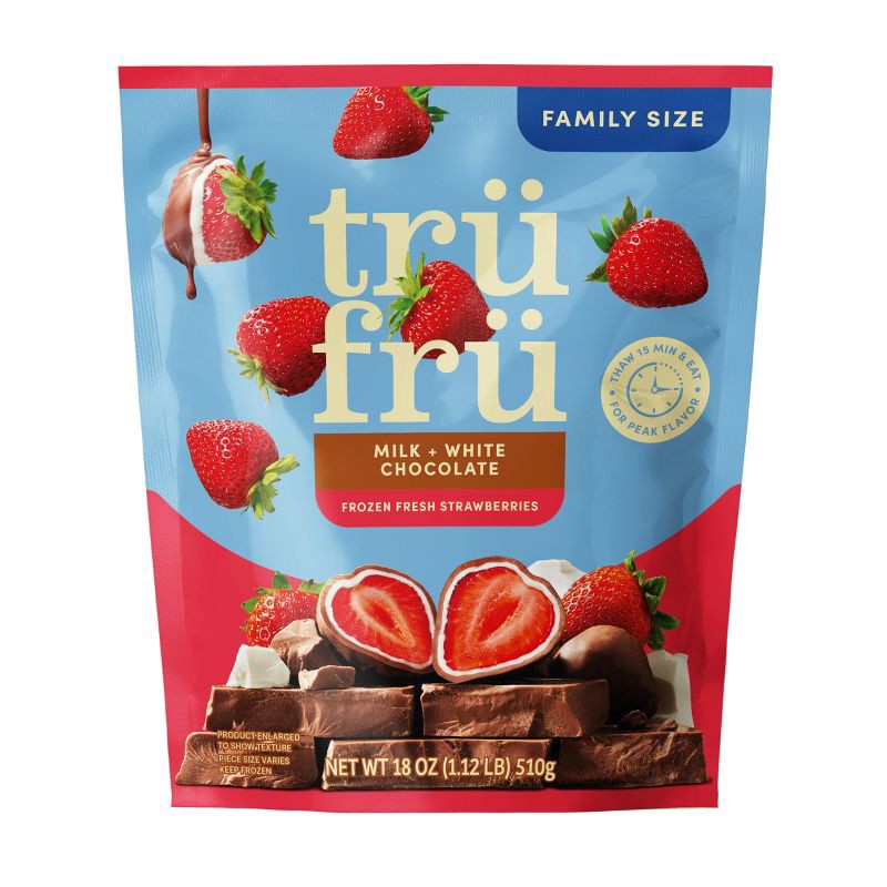 Tru Fru starts with farm fresh strawberries, flash frozen to lock in flavor and nutrients. We dip ripe fruit in smooth milk chocolate and creamy white chocolate for the ultimate frozen chocolate-cover…