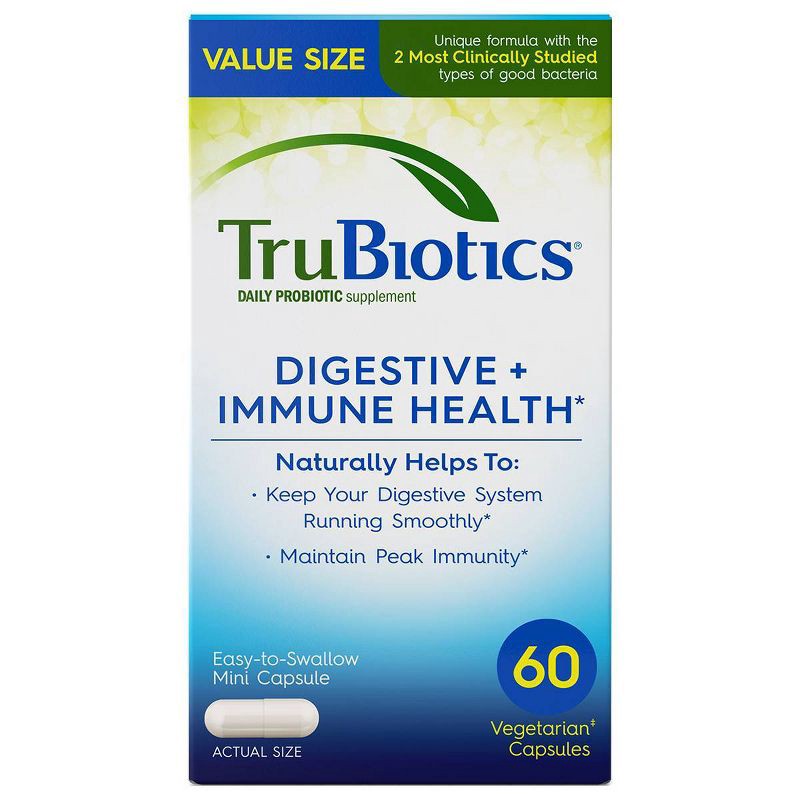 TruBiotics daily probiotic supplement capsules naturally support digestive and immune health. Helps replenish good bacteria impacted by lifestyle factors including diet, stress and travel. Supports th…