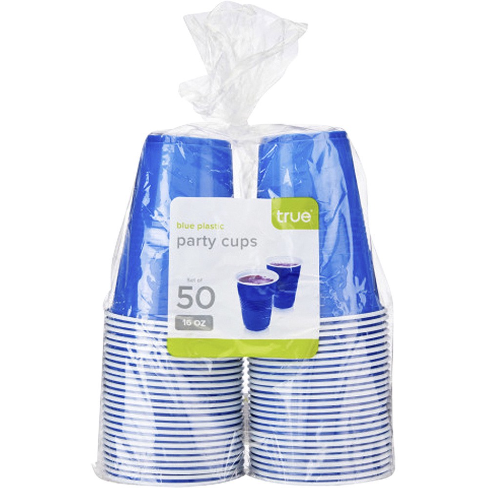 True Blue Party Cups, Disposable Cups, Drink Cups for Cocktails and Beer, 16 Ounce Capacity, Plastic, Blue, Set of 50