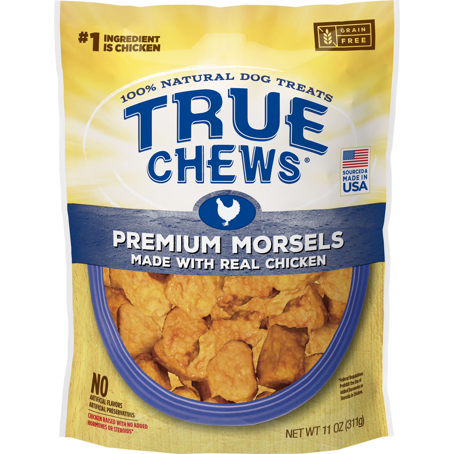 Chicken, Potatoes, Vegetable Glycerin, Dried Citrus Pulp, Natural Flavors, Salt, Distilled Vinegar, Colored with Paprika.