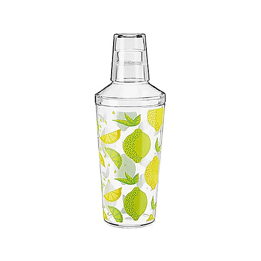 Decorated in a citrus motif, this plastic shaker makes cocktail hour easy and delicious. 16oz capacity with cap strainer.