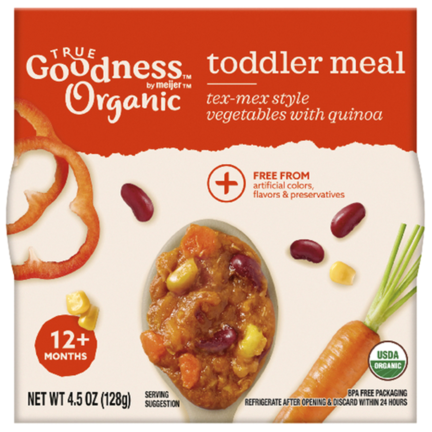 slide 4 of 21, True Goodness Org Tex Mex Veg With Quinoa Meal, 4.5 oz