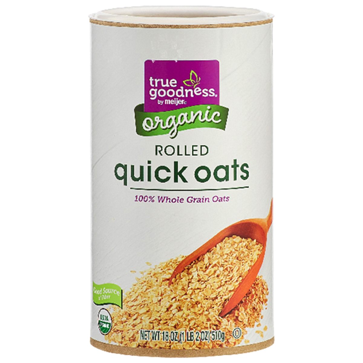 Experience the difference wholesome ingredients make with the high-fiber True Goodness Organic Rolled Quick Oats. These 100% whole grain oats will keep you and your family feeling full and energized t…