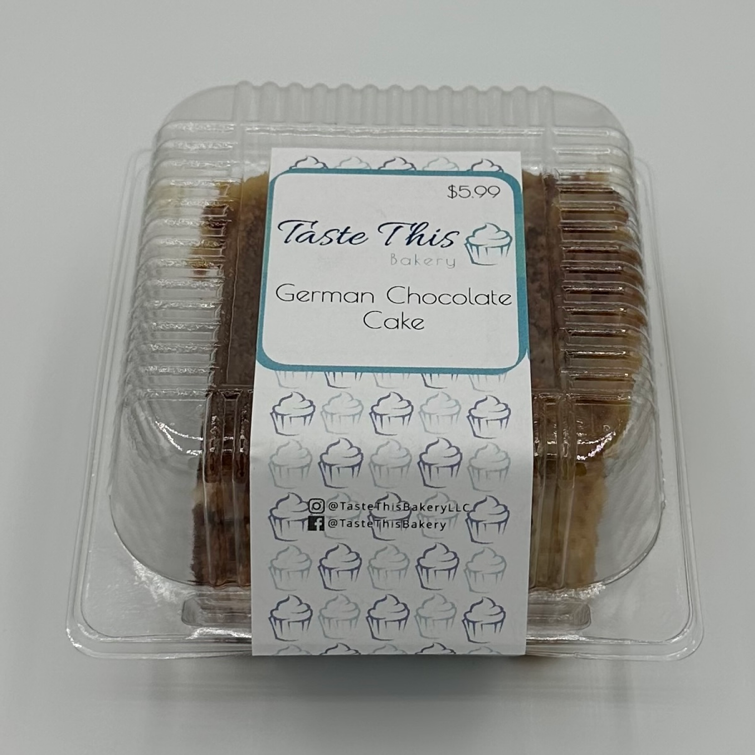Three layers of rich, sweet chocolate cake, layered with a creamy pecan & coconut frosting. Our mission at Taste This Bakery is to bring all of your favorite desserts to you, fresh and from scratch. E…