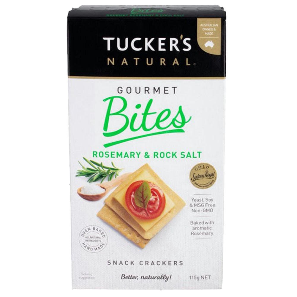 A bite-sized version of one of our most popular flavour Gourmet Crackers – real aromatic rosemary and mineral-rich Australian rock salt, baked in, make this another award winner in the Tucker's Natura…