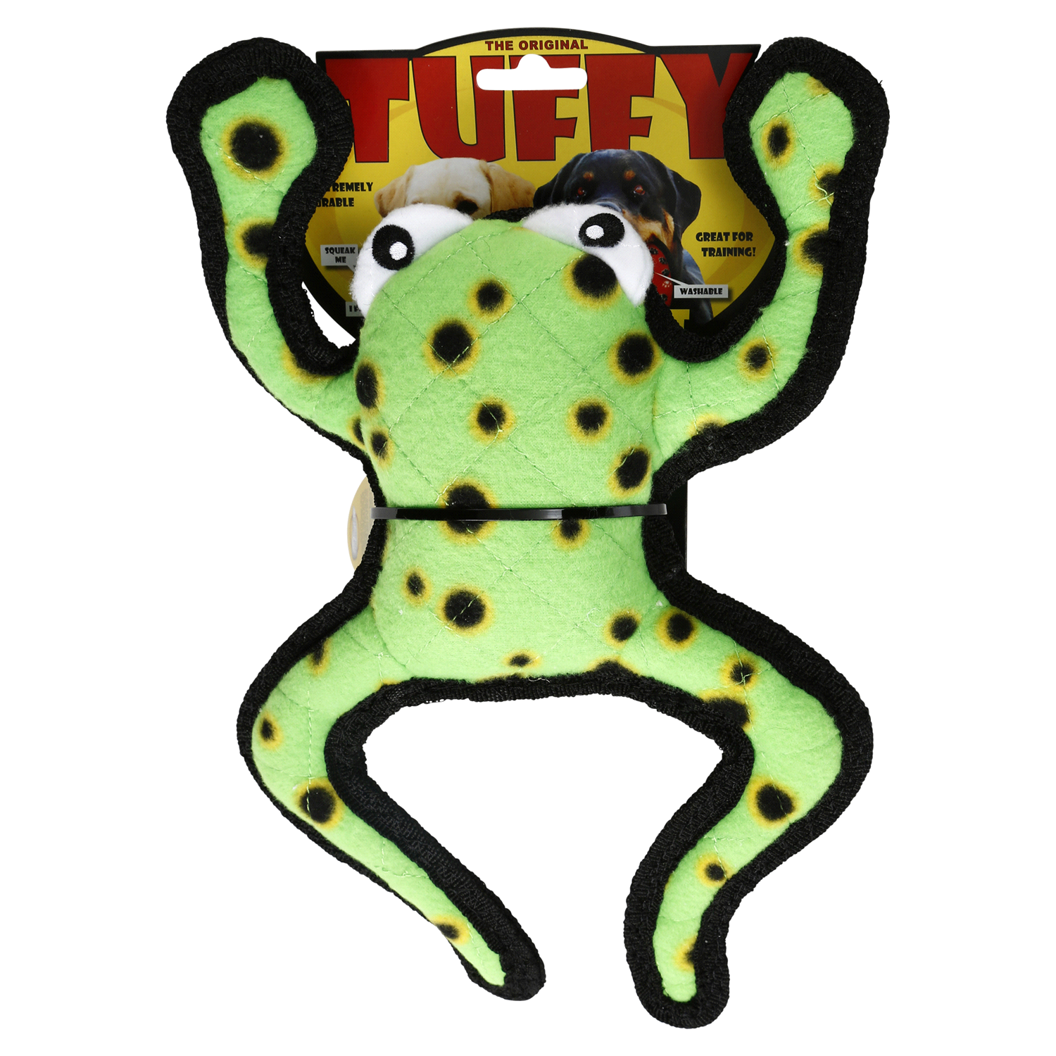 Your dog will surely love the TUFFY Phrog Leap. This toy is made with multiple layers of materials, and sewn with multiple rows of stitching, for extra durability. Multiple squeakers are sewn into saf…