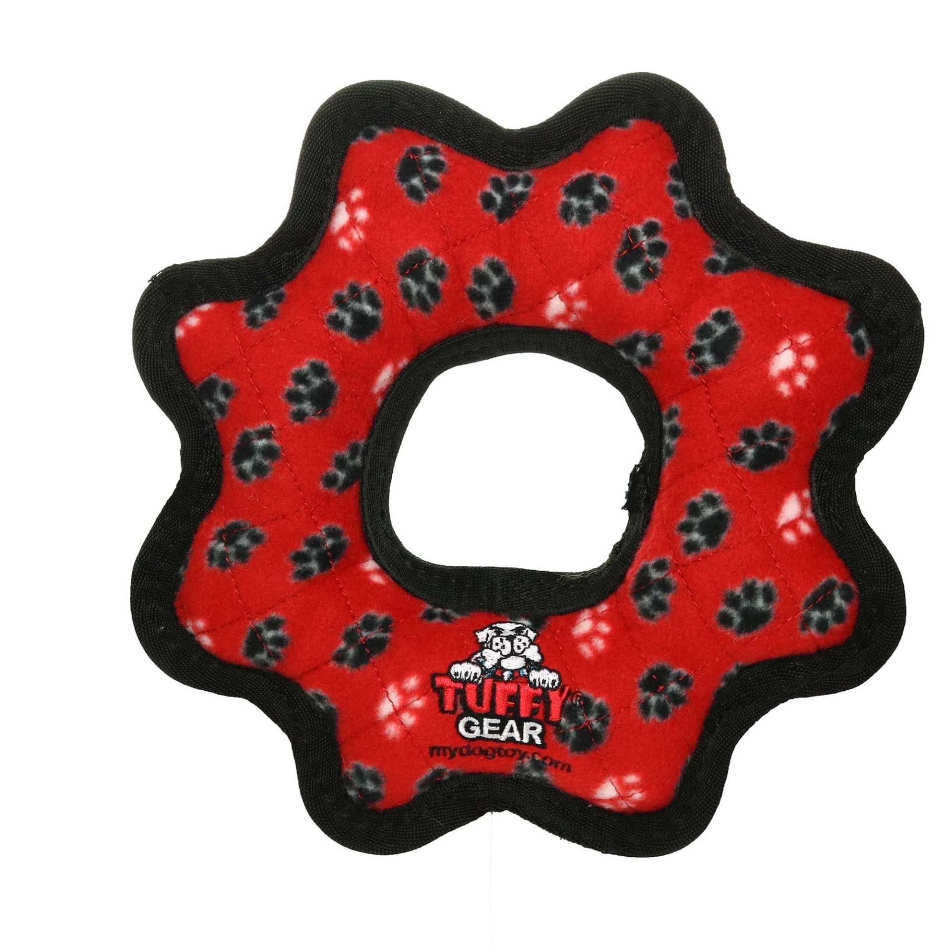 Tuffy's Red Paw Print Ultimate Gear Ring Tug Dog Toy, Medium