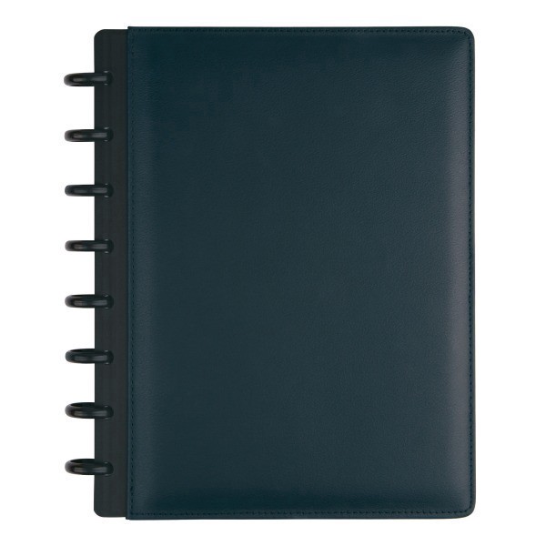TUL® Discbound Notebook With Leather Cover, Junior Size, Narrow Ruled, 60 Sheets, Navy