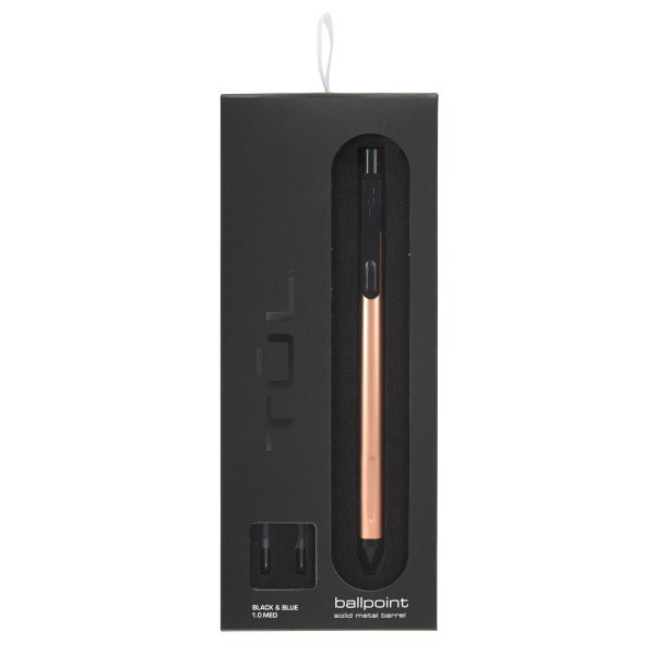 TUL Fine Writing Solid Metal Barrel Ballpoint Pen With 2 Refills, Medium Point, Rose Gold Barrel, Black/Blue Ink, 1.0 mm