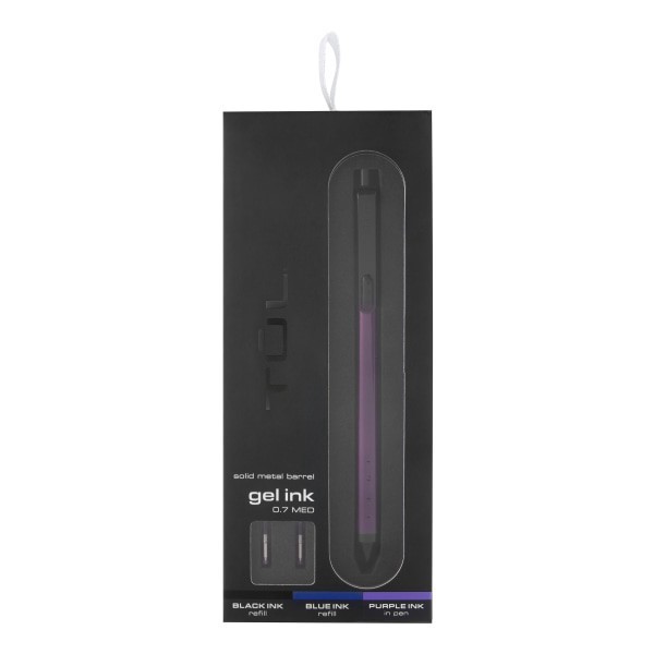 TUL® Fine Writing Solid Metal Barrel Retractable Gel Pen With 2 Refills, Medium Point, 0.7 mm, Purple Barrel, Purple/Black/Blue Ink
