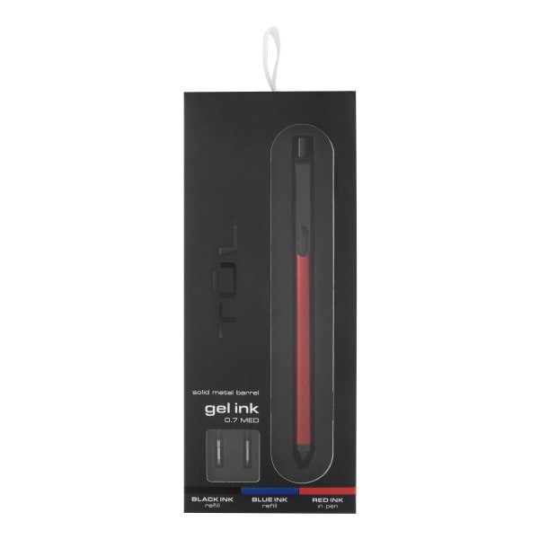 Tul Fine Writing Solid Metal Barrel Retractable Gel Pen With 2 Refills, Medium Point, 0.7 Mm, Red Barrel, Red/Black/Blue Ink
